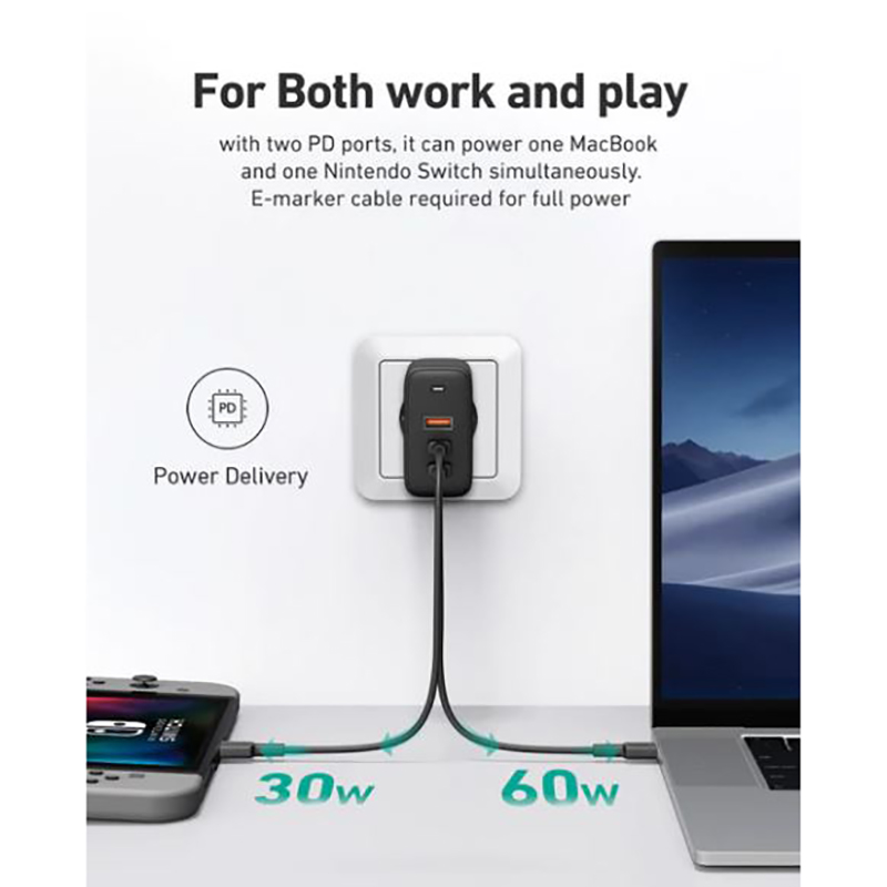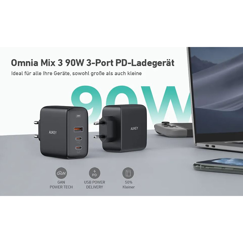 شارژر دیواری PA-B6S ساخته شده توسط برند آکی می باشد که امروزه محبوبیت زیادی پیدا کرده است. این آداپتور وزنی 189 گرمی داشته و دارای ایعاد کوچک می باشد که آن را به محصولی خوش دست که به راحتی می توان حمل کرد تبدیل کرده است. این شارژر دارای 2 درگاه USB-C و یک پورت USB می باشد که از فناوری PD پشتیبانی می کند و توان حداکثری 90 وات را برای شارژ دستگاه های شما فراهم می کند. شدت جریان و ولتاژ خروجی این کالا  ، 3A ، 4A است و همین طور ولتاژ و جریان ورودی آن نیز 100V-240V ~50/60Hz 0.5A می باشد.