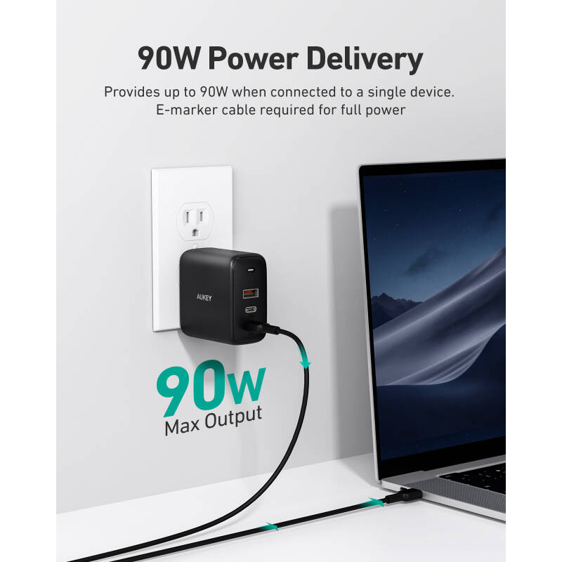 آداپتور و شارژر دیواری 90 وات آکی | Aukey PA-B6S 90W PD
