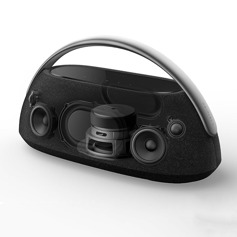 اسپیکر بلوتوثی و قابل حمل هارمن کاردن مدل Harman Kardon Go + Play 3 دارای توان خروجی 160 واتی با زمان پخش تا 8 ساعت می باشد.