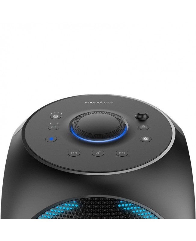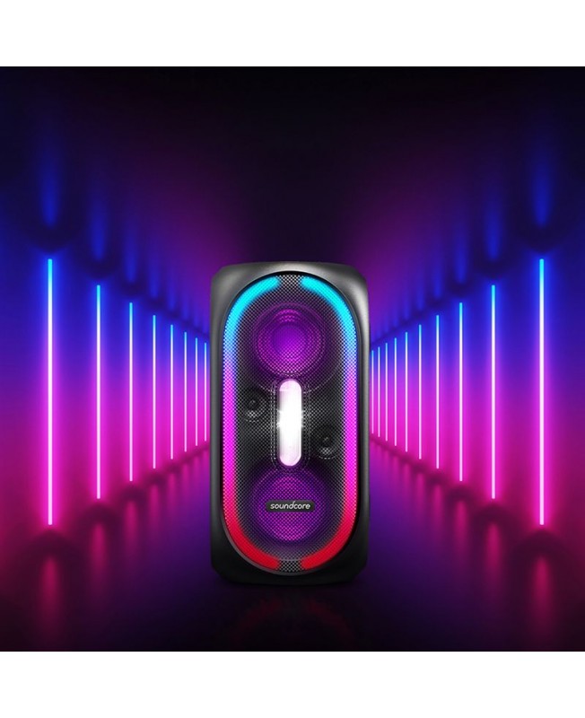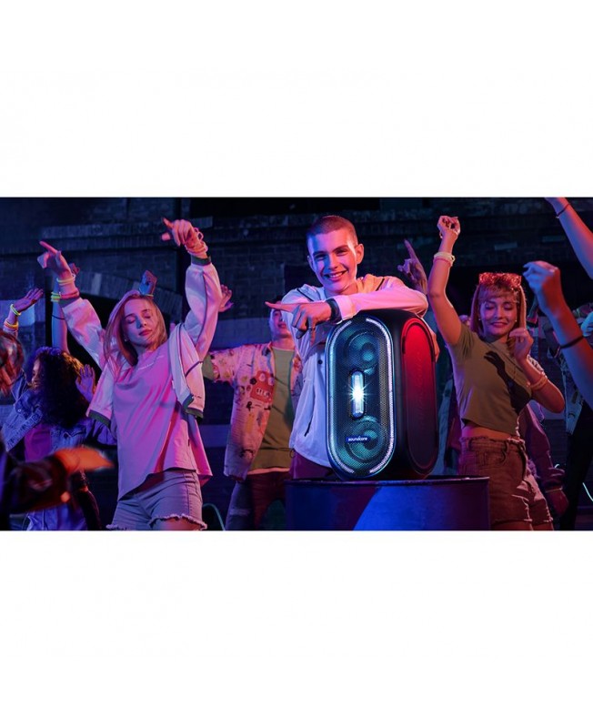 یک اسپیکر قابل حمل با حجم صدای بالا و کیفیت خیلی خوب می تواند برای سفر و فضا های باز بسیار مطلوب باشد. اسپیکر بلوتوثی Anker Soundcore Rave A3391 یک اسپیکر قابل حمل با توان خروجی 160 وات می باشد که بلندی صدای خیلی خوبی دارد. اسپیکر Soundcore Rave به لطف باطری قوی ای که دارد تا 24 ساعت قابل استفاده می باشد که یک حسن بسیار بزرگ برای یک اسپیکر در این ابعاد است. همچنین یک خروجی USB پشت اسپیکر قرار دارد تا شما گوشی موبایل خود را با آن شارژ کنید. و جالب اینکه خروجی USB روی اسپیکر دارای تکنولوژی Power IQ می باشد ، به این معنی که تشخیص آمپر و ولتاژ مورد نیاز موبایل شما بطور خودکار توسط درگاه خروجی USB روس اسپیکر انجام می شود. همچنین پشت اسپیکر ورودی میکروفون مشاهده می شود و شما می توانید با اتصال میکروفون به اسپیکر Soundcore Rave همراه با موزیک بخوانید. همچنین یک درگاه USB دیگر پشت اسپیکر قرار دارد که می توانید فلش مموری به آن متصل کنید. Anker Soundcore Rave A3391 یک رقص نور هوشمند روی خود دارد تا هنگام پخش موزیک لذت بیشتری از آن ببرید. همچنین روی اسپیکر یک دکمه به نام Bass Up قرار دارد تا موزیک های بیس دار را با بیس قویتر گوش کنید و به وسیله اپلیکیشن Soundcore میتوانید رقص نور و سایر تنظیمات اسپیکر Rave A3391 را روی اپلیکیشن تنظیم نمایید. یکی از قابلیت های ویژه اسپیکر بلوتوثی انکر Anker Soundcore Rave A3391 قابلیت اتصال به یک دیگر است. اگر دو Rave را به یکدیگر متصل کنید می توانید اسپیکر را در اپلیکیشن بصورت چپ و راست تنظیم کنید تا صدای جذاب تری بشنوید. همچنین قابلیت اتصال بیش از دو اسپیکر Rave به یکدیگر نیز وجود دارد.