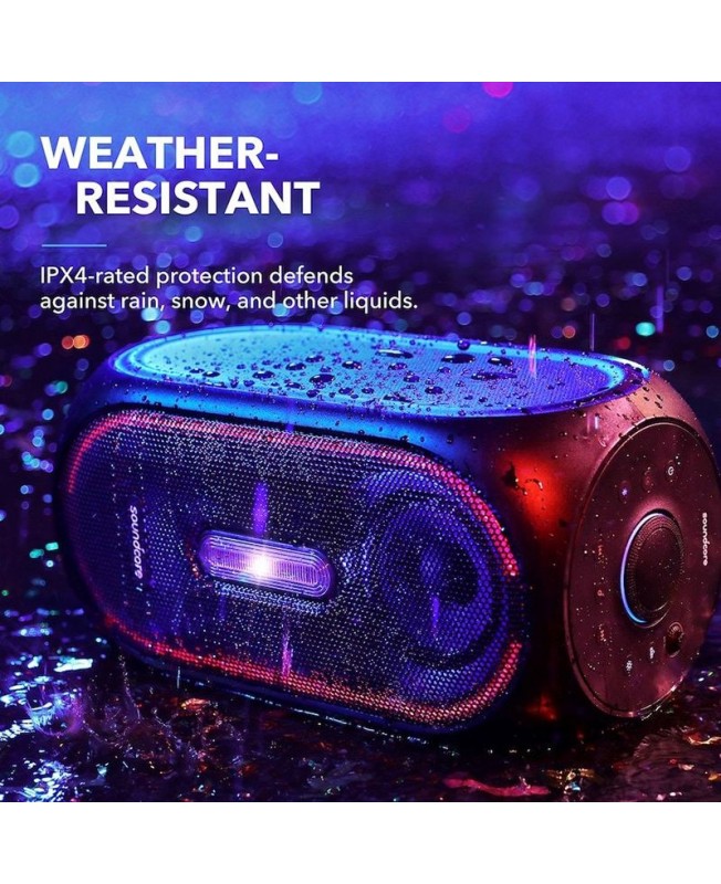 اسپیکر بلوتوثی انکر Soundcore Rave با 24 ساعت زمان پخش و استاندارد ضد آب IPX4 و خروجی صدای 160 واتی اسپیکری بسیار مناسب برای فضا های باز و بسته میباشد.