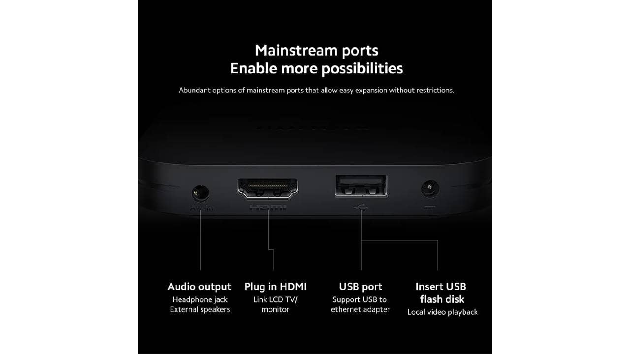 برای راحتی حال کاربران، پورت های مختلف بر روی این دستگاه تعبیه شده اند تا افراد بتوانند با توجه به شرایط خود و امکانات تلویزیونی که دارند، با ساده‌ترین راه ممکن اندروید باکس خود را راه‌اندازی کنند. شرکت شیادومی بر روی این دستگاه از پورت HDMI 2.0، پورت USB 2.0، ورودی برق، و پورت AV استفاده کرده است. همچنین اندروید باکس S 2nd Generation از بلوتوث 5.2 و Wi-Fi دو باند نیز پشتیبانی می‌کند تا ااتصال به اینترنت و سایر دستگاه‌ ها سریع تر و راحت تر انجام شود.