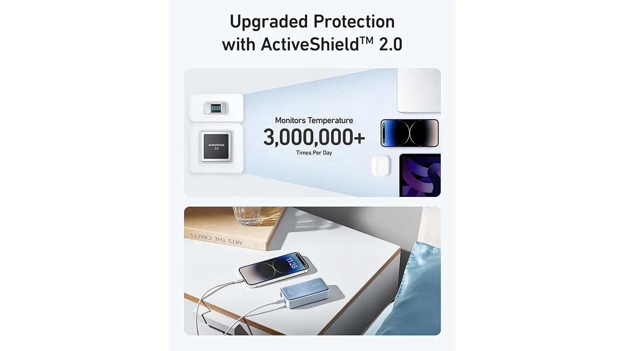 نکته قابل توجه در مورد طراحی این پاوربانک انکر آن است که علاوه بر داشتن سه درگاه خروجی برای شارژ محصولات مختلف از فناوری شارژ سریع PD نیز بهره مند می باشد. لازم به ذکر است که می توان از درگاه USB-C این پاوربانک برای شارژ آن استفاده کرد و شدت جریان و ولتاژ ورودی مناسب آن 5V/3A , 9V/2A می باشد. شدت جریان و ولتاژ خروجی نیز به این صورت است: USB-C: 5V/3A , 9V/2.22A Total Output : 5V= 3.6A