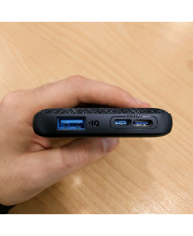 پاوربانک A1229 انکر دارای یک پورت خروجی USB و نسبت به سایر پاور بانک های این برند از ظاهری زیبا و جذاب بهره می برد و یک طرف پاور بانک را قسمتی پارچه ای پوشش داده است. وقتی Anker PowerCore Metro Slim را جعبه گشایی کنید ، علاوه بر خود پاور بانک ، یک کابل کوتاه Micro USB ، یک کیف پارچه ای ساده و کاتالوگ محصول را مشاهده خواهید کرد. خود پاوربانک دارای یک درگاه خروجی USB با تکنولوژی Power IQ میباشد که بیشینه توان خروجی آن 12 وات خواهد بود. در تکنولوژی پاور IQ به کمک چیپستی که درون محصول قرار دارد ، میزان ولتاژ و آمپر مورد نیاز محصولی که میخواهید شارژ کنید را تشخیص و بر اساس آن دستگاه مورد نظرتان را شارژ می کند. همچنین دو درگاه ورودی Micro USB و USB-C روی پاوربانک قرار دارد تا خود پاوربانک را با آن ها شارژ نمایید. روی قسمت پارچه ای پاوربانک 10000 میلی آمپر ساعت انکر ، یک دکمه دایره ای شکل با 4 چراغ LED قرار دارد تا شما را از میزان شارژ پاوربانک مطلع کند که هر چراغ نشان دهنده حدود 25% شارژ خود پاوربانک میباشد. نکته مهم راجب پاوربانک 10000 میلی آمپر ساعتی انکر : درگاه USB-C محصول برای شارژ خود پاوربانک میباشد و قابلیت شارژ دهی را ندارد.