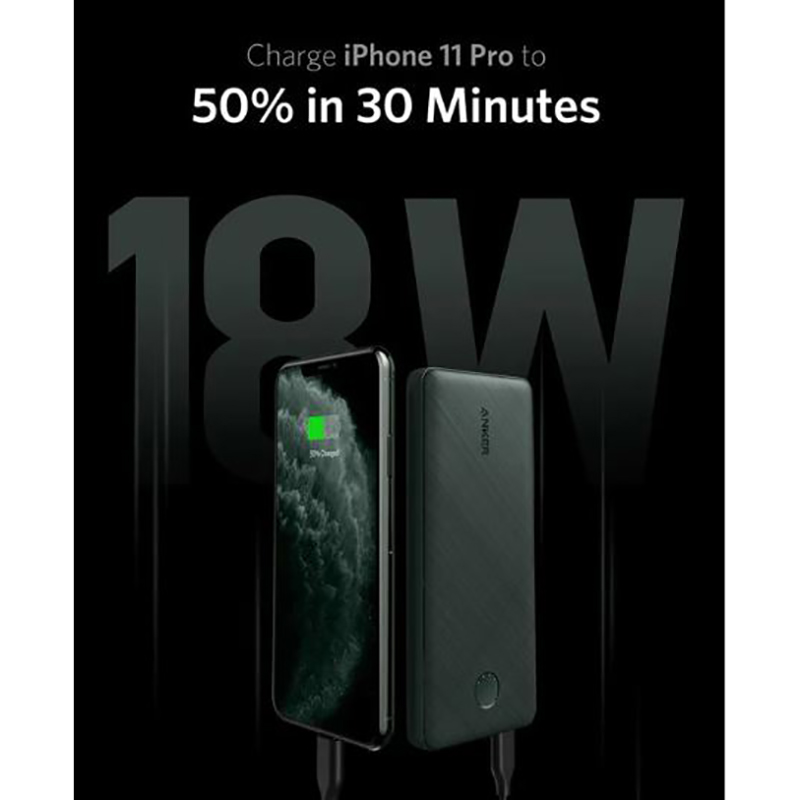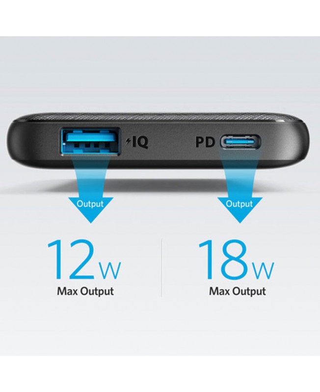پاور بانک PowerCore Slim 10000 PD برند انکر دارای باتری لیتیومی با ظرفیت 10000 میلیآمپر ساعت و یک درگاه خروجی USB با ولتاژ و جریان خروجی ( 5V/2.4A ) است که با استفاده از این درگاه میتوانید تمامی گوشیها و دستگاههای iPhone، iPad و سایر گوشیها و دستگاه های اندروید را شارژ کنید. این محصول قابلیت تشخیص شدت جریان به صورت هوشمند و شناسایی دستگاه شما با تکنولوژی Power IQ و شارژ کردن حداکثر آن و قابلیت تشخیص مقاومت یا Voltage Boost کابل برای شارژ دهی سریع تر را داراست. مدار Voltage Boost در قسمت ورودی این پاوربانک طراحی شده تا بتواند مقدار ولتاژ تلف شده را جبران کرده و جریان ورودی را به صورت مستقیم هدایت کند. همچنین PowerCore Slim 10000 PD A1231 برای نمایش میزان باتری از نشانگر LED بهره مند است و هر LED آن نشان دهنده 25 درصد شارژ می باشد. اما نکته مهم دیگری که باید در باره این پاوربانک برند انکر به آن اشاره کرد قابلیت شارژ Power Delivery با توان حداکثر 18 وات ( 5V/3A - 9V/2A - 15V/1.2A ) را داراست تا در سریع ترین زمان ممکن دستگاه های خود را با قابلیت PD شارژ نمایید.