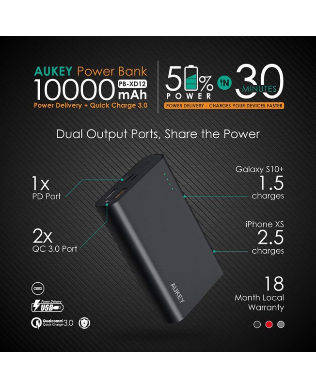 پاوربانک آکی ظرفیت 10000 میلی آمپر ساعت | AUKEY PB-XD12