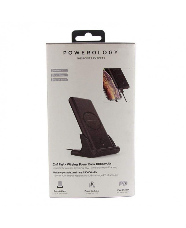 پاوربانک PWLPB10FCBK برند پاورولوژی با وزنی حدود 150 گرم و ابعاد 180*100*70 میلی متر بدنه ای مقاوم در برابر خط وخش و ضربه دارد و می تواند به صورت بی سیم دستگاهای دارای این قابلیت را شارژ نمایید ، همچنین در صورت اتمام شارژ این پاوربانک میتوانید آن را بر روی داکتی که توسط Powerology طراحی و در بسته بندی آن قرار داده شده است بگدرید و تا بتوانید دوباره از پاوربانک بی سیم خود استفاده نمایید. پاوربانک پاورولوژی از فناوری های MultiProtect برای کنترل دما در هنگام شارژ و کاهش خودکار قدرت و قابلیت Fast charge برای شارژ هرچه سریع تر دستگاه شما پشتیبانی می کند ، البته ناگفته نماند که یک پورت USB نیز بر روی این شارژر همراه وجود دارد که با کمک آن می توانید دستگاها و تلفن های همرایی که از شارژ بی سیم پشتیبانی نمی کنند را به راحتی شارژ کنید. نکته قابل توجه راجب پاوربانک پاورولوژی پشتیبانی آن از تکنولوژی فست شارژ PD یا همان Power Delivery از طریق درگاه خروجی USB-C آن میباشد.