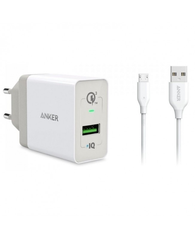 شارژر دیواری 18 وات انکر همراه با یک کابل microusb دارای قابلیت Power IQ برای تشخیص شدت جریان دستگاه و 3.0 Quick Charge برای تسریع در عمل شارژ شدن دستگاه شما می باشد.