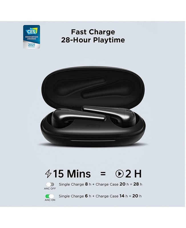 ES901 از یک باتری 450 میلی آمپر ساعتی در کیس شارژ بهره می برد که توانایی ارائه پلی تایمی در حدود 28 ساعت را داراست و اگر به تنهایی از ایربادز های آن استفاده کنید می توانید برای 8 ساعت به پخش موسیقی مورد علاقه خود بپردازید البته این پلی تایم در صورت خاموش بودن ANC می باشد و در مواقع روشن بودن این قابلیت زمان پخش همراه با کیس به 20 ساعت و به ایرپادها به 6 ساعت کاهش پیدا خواهد کرد، برای شارژ خود کیس هم 120 دقیقه زمان نیاز است تا به طور کامل شارژ شود. از دیگر قابلیت های این هدفون بی سیم هم همان طور که اشاره شد پشتیبانی از اکتیو نویز کنسلیگ است که این امکان را برای Comfo buds Pro ایجاد کرده تا بتواند کیفیت قابل قبولی را در هنگام برقراری تماس ارائه دهد.درباره اقلام موجود در بسته بندی کامفوبادز پرو هم باید گفت که یک کابل شارژ، سه سایز سیلیکونی ، کیف حمل ،کاور سیلیکونی کیس و دفترچه راهنما قرار داده شده است.