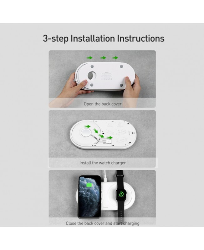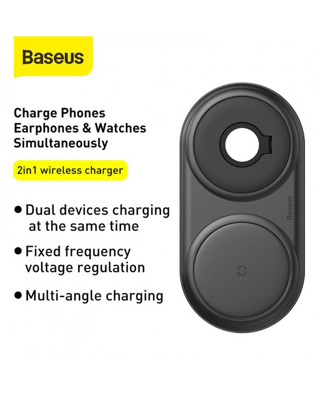 شارژر وایرلس Planet 2 in 1 محصولی از کمپانی Baseus بوده که یک قابلیت بخصوص داشته و آن هم شارژ گوشی و ساعت هوشمند به طور همزمان می باشد و شما می توانید هر دوی آنها را همزمان شارژ کنید.