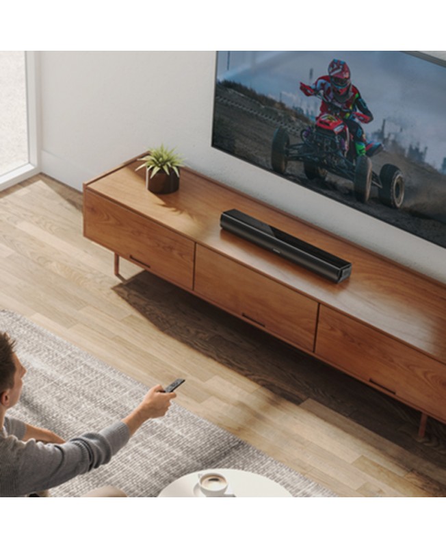 یک ساندبار کوچک و جمع و جور میتواند برای تلوزیون خانه و حتی میز کامپیوتر بسیار جذاب باشد. ساندبار 2 کانال ساندکور انکر Anker Soundcore Infini Mini A3370 که تنها 21 اینچ طول دارد ، برای تماشای فیلم ، انجام بازی و حتی گوش دادن به موزیک بسیار مناسب است. به وسیله کابل اوپتیکال میتوانید ساندبار انکر Infini Mini را به راحتی به تلوزیون خود متصل کنید و از کیفیت بسیار بالای آن لذت ببرید. منظور از 2 کانال بودن ساندبار داشتن یک کانال صدای چپ و یک کانال صدای راست میباشد (Left & Right). داخل جعبه ساندبار انکر A3370 یک کنترل وجود دارد تا به راحتی بتوانید تنظیمات ساندبار را تغییر دهید. همچنین قابلیت اتصال بی سیم از طریق بلوتوث برای گوش دادن به موزیک نیز وجود دارد. جالب است بدانید ساندبار ساندکور انکر Infini Mini A3370 تنها 1.18 کیلوگرم وزن دارد.
