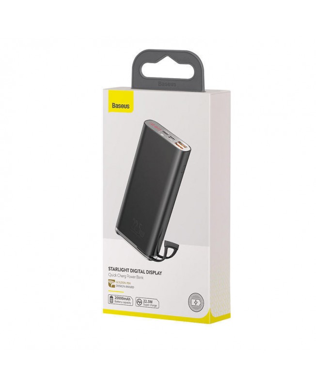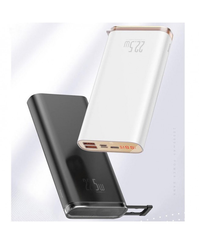 پاوربانک بیسوس با ظرفیت 20000 میلی آمپر ساعت و پشتیبانی از شارژ سریع 22.5 واتی به همراه قابلیت های QC3.0 ، PD3.0 ، FCP ، AFC توانایی شارژ همزمان 3 دستگاه را دارد.