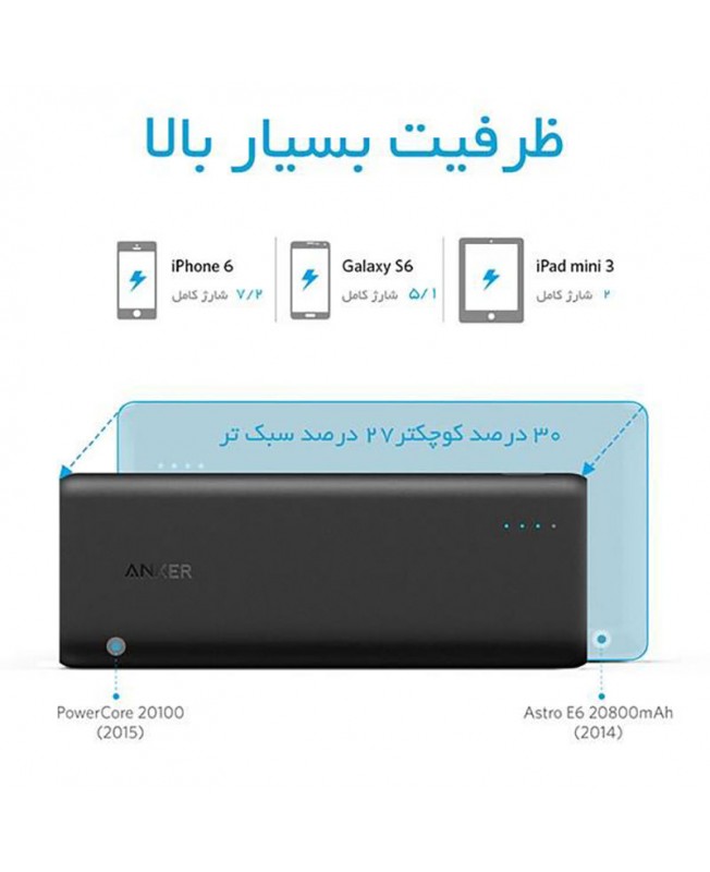 پاوربانک انکر با ظرفیت 20100 میلی آمپر ساعت | Anker PowerCore A1271