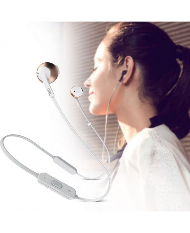 JBL Tune 205BT از این فناوری JBL Pure Bass Sound بهره می گیرد و به این معناست که بس صدای عمیق و قدرتمندی را می تواند به شما ارائه دهد. و این هدفون Tune 205BT جی بی النوعی هدفون توگوشی بی سیم است که به واسطه اتصال بی سیم و بلوتوث به گوشی موبایل یا تبلت شما متصل می گردد. همچنین هدفون JBL Tune 205BT دارای یک عدد باتری پلیمر لیتیوم یونی قابل شارژ می باشد که 120 میلی آمپرساعت ظرفیت دارد و شارژ صفر تا صد درصد باتری این هدفون، در مدت زمانی کمتر از 2 ساعت انجام می پذیرد، به ازای هر بار شارژ کامل این هدفون می توانید از 6 ساعت پخش موسیقی یا مکالمه با آن لذت ببرید. در ساخت این هدفون از درایورهای 12.5 میلی متری استفاده شده که میتواند صدای خوبی را ارائه دهد، سرگوشی های هدفون JBL Tune 205BT نیز به صورت ارگونومیک طراحی شده که عدم خستگی گوش شما را به همراه دارد. کابل به کار گرفته شده در ساخت این هدفون های کابل های بسیار محکم فلت است که در برابر گره خوردگی از مقاومت بالایی برخودار می باشند.و همچنین به روی کابل این هدفون یک ریموت کنترل طراحی شده که به واسطه آن می توانید موزیک و تماسهای دریافتی خود را کنترل نمایید.نکته آخر و قابل توجه 205BT وزن بسیار سبک آن است که تنها 16.5 گرم وزن دارد. "سبک وزنی و کیفیت صدا، باس عمیق و پرقدرت از قابلیت های 205BT هستند که می توانند این هدفون را تبدیل به یک محصول دوست داشتنی برای شما کنند."