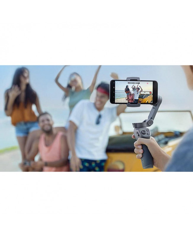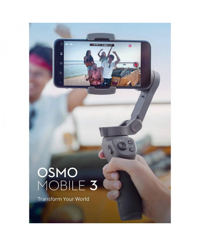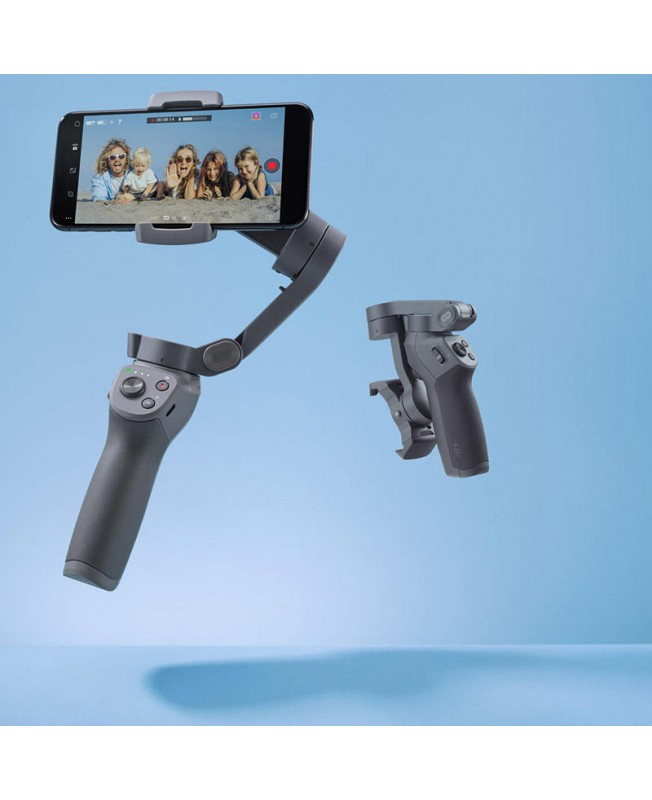 گیمبال Osmo mobile 3 محصولی از کمپانی DJI است که دارای زاویه گریپ 15 درجه ، ابعاد 103*125*285 میلی متر در حالت تاشونده و وزن 405 گرم می باشد و با طراحی نرم ، تاشو و 3 محوره خود به طور موثری لرزش را در هنگام فیلم برداری کاهش می دهد.همچنین اوزمو موبایل 3 به دلیل وزن کم و به لطف طراحی هوشمندانه این امکان را برای شما فراهم می کند تا آن را به راحتی در کوله پشتی خود حمل و در هر زمان و مکانی به مدت طولانی و بدون دشواری استفاده کنید و تمامی لحضات خود را به بهترین نحوه ضبط و با کمک برنامه DJI Mimo به ویرایش ویدیوهای خود به صورت حرفه ایی و اشتراک آن با نزدیکانتان بپردازید. بر روی این محصول کمپانی دی جی آی یک کنترل و 3 دکمه وجود دارد که از کنترلر آن برای تغییر زاویه آن می توان استفاده کرد اما دو کلید آن قابلیت های متفاوتی دارند ، کلید پایینی برای دسترسی سریع به منو (Quick Menu) و تغییر حالت افقی به عمودی (Quick Roll) موبایل شما است و در صورت نگه داشتن آن گیمبال خاموش/روشن می شود، از دکمه بالایی هم می توان برای انداختن عکس و شروع به ضبط ویدیو استفاده نمود؛کلید سوم و آخری این لرزشگیر در پشت آن قرار دارد که کارایی های جذابی را برای شما فراهم می کند به این صورت که با یکبار لمس سوژه را شناسنایی و دوربین را بر روی آن قفل می کند، با دو بار لمس حالت زوایا را تراز و تلفن را در مرکز قرار می دهد و با سه بار لمس دوربین را عوض می کند.