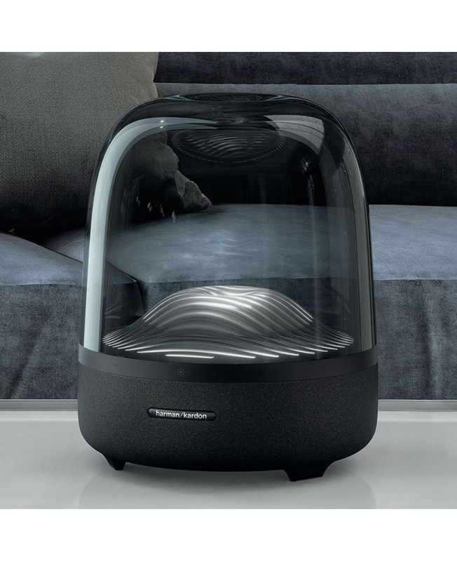 مدل جدید اسپیکر های برقی هارمن کاردن که دارای بلوتوث نسخه 4.2 میباشد و نسبت به نسخه قبلی خود دست خوش تغییراتی شده از جمله تغییر در ظاهر شیشه ای آن که خرجی هوای اسپیکر در این نسخه بسته شده و همچنین نور ظریف داخل اسپیکر نیز بسیار جذاب تر از مدل قبلی خود شده است و بر روی بدنهی ائورا استودیو 3 دکمههای لمسی برای کنترل آن وجود دارد که از طریق آن می توان روشن بودن ، بلوتوث ، ولوم موسیقی و نورپردازی دستگاه را کنترل کرد.اما نکته ایی که باید به آن اشاره کرد این است که در Aura Studio 3 بر خلاف نسخه قبلی خود یعنی ائورا استودیو 2 دیگر خبری از دکمه ی پاسخگویی به تماسهای تلفنی نیست و شما نمیتوانید با این اسپیکر به تماس های خود پاسخ دهید.