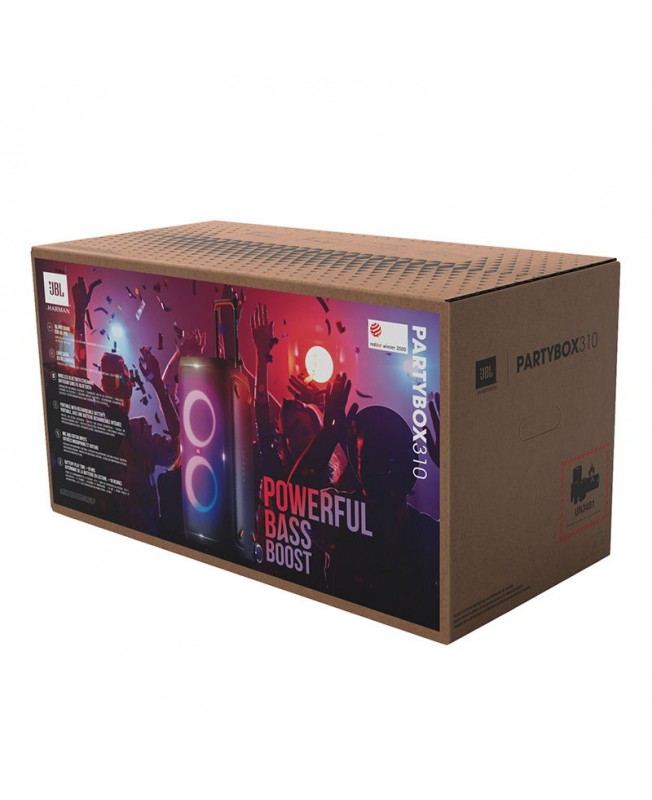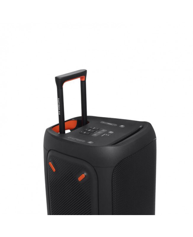 اسپیکر Partybox 310 شرکت JBL با 240 وات توان خروجی و تا 18 ساعت زمان استفاده محصولی جذاب و متفاوت میباشد که نسبت به مدل های قبل تر از خود قابل حمل تر و دارای استاندارد ضد پاشش آب (IPX4) است.