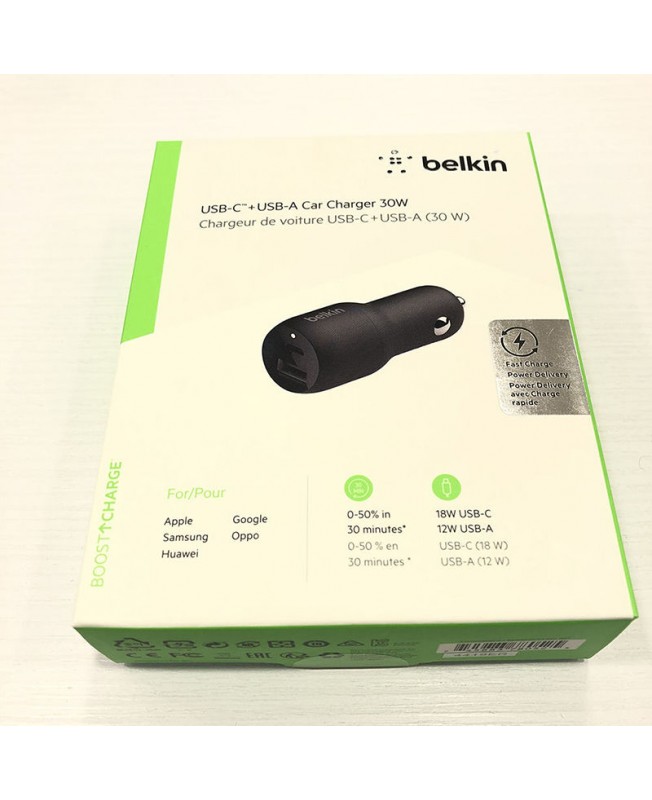 شارژر فندکی 32 وات بلکین مدل F7U100BT که از تکنولوژی PD پشتیبانی میکند دارای دو پرت USB-A و USB-C میباشد.