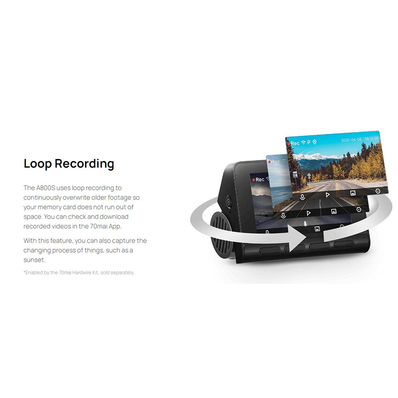 این محصول دارای 7 لایه لنز با دیافراگم F1.8 و سنسور IMX415 سونی بوده که باعث کیفیت بالای تصاویر شده و وضوح بیشتری را فراهم می کند. نصب این کالا آسان است و به صورت چسبی به مکانی مثل شیشه خودرو می توان آن را متصل کرد، همچنین این دوربین قابلیت ثبت تصاویر در شب را داشته و در آب و هوا های مختلف کارآمد می باشد و البته از تکنولوژی 3D DNR بهره برده که باعث کاهش نویز های تصاویر می شود. این کالا دارای سنسور G بوده که ضربات ناگهانی را تشخیص داده و اتفاقات مشکوک را به کمک آن می توان ثبت کرد و طبق گفته 70Mai اگر یک ویدیو ثبت بشود زمانی که دوربین روشن شود به صورت پیغامی صوتی دوربین شما را مطلع می کند، که برای استفاده از این ویژگی نیاز به تهیه جداگانه کیت سخت افزاری 70mai و نصب آن می باشد.