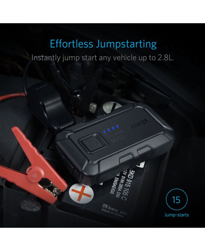 پاوربانک و جامپ استارتر 9000 میلی آمپر ساعتی انکر مدل Anker Roav R3110 تا 15 بار قابلیت استفاده به عنوان جامپ استارتر ماشین با یک بار شارژ کامل را داراست.