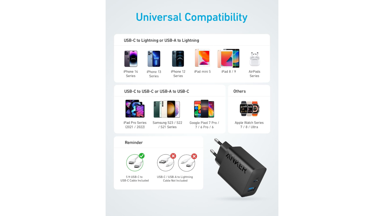Anker 2-Port High-Speed Charger With USB-C Cable B2348