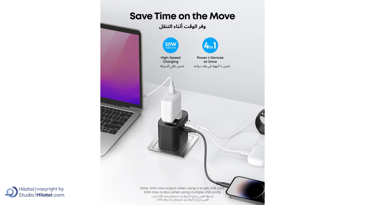 این شارژر با توان خروجی 30 وات عرضه می شود. وزن سبک و ابعاد کوچک این شارژر را به گزینه ای مناسب برای حمل در سفر یا استفاده روزمره تبدیل کرده است.