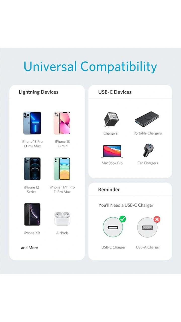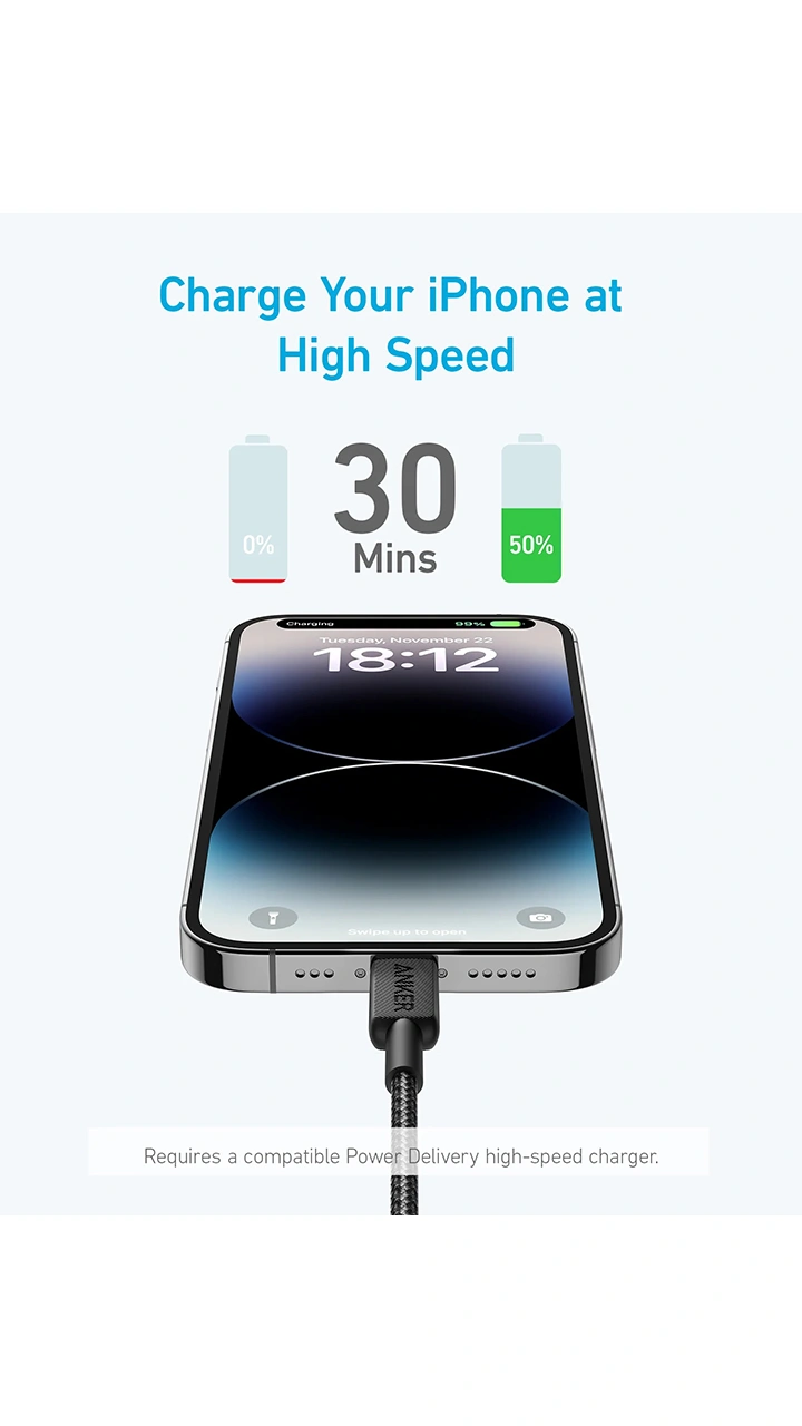 | کابل شارژ 90 سانتی متری USB-C به لایتنینگ انکر مدل A81B5 | |