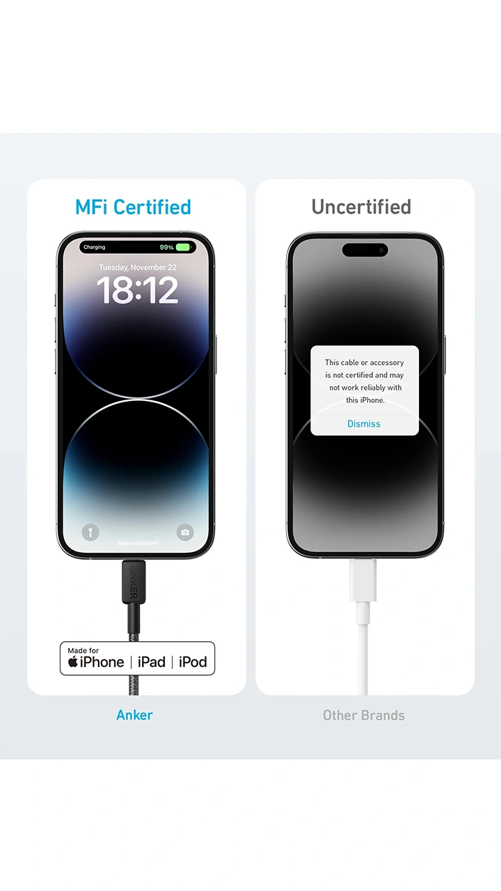 علاوه بر قابلیت شارژ سریع، این کابل امکان انتقال داده با سرعت مناسب را نیز فراهم می کند. طراحی آن به گونه ای است که برای استفاده در انواع لپ تاپ، تبلت و موبایل مناسب باشد و به لطف گواهینامه MFi اپل، سازگاری کامل با دستگاه های این شرکت را تضمین می کند.