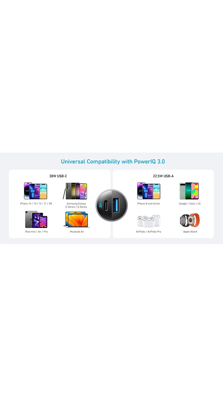 شارژر فندکی 52.5 وات 2 پورت انکر مدل A2735 برای شارژ دستگاه از طریق سوکت فندکی خودرو استفاده می شود. این محصول دو درگاه خروجی دارد که یکی USB و دیگری USB – C است. در نتیجه این شارژر برای شارژ دو دستگاه به صورت هم زمان نیز کاربرد دارد.