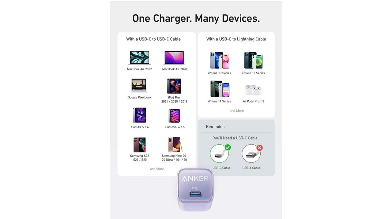 برای شارژ گوشی، تبلت، لپ تاپ، هدفون های بدون سیم و سایر لوازم دیجیتالی که نیاز به شارژ باتری دارند، اداپتور 30 وات انکر مدل Nano 3 A2147 یکی از بهترین محصولات موجود در بازار محسوب می شود. این آداپتور قابلیت شارژ سریع دارد و در زمانی کوتاه باتری را به شارژ 100 درصد می رساند.