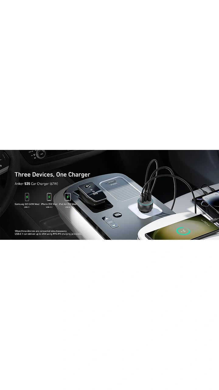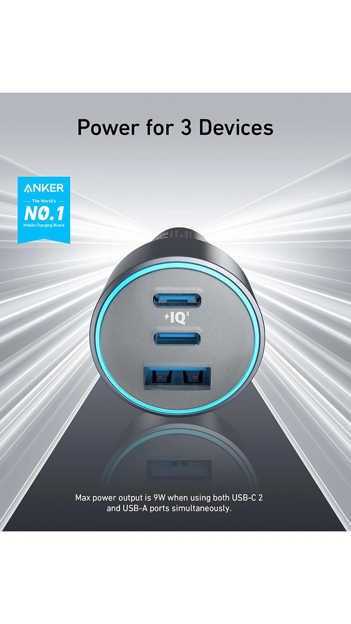 ویژگی ها و مشخصات Anker 67W Powerful Triple-Port 535 Car Charger B2731