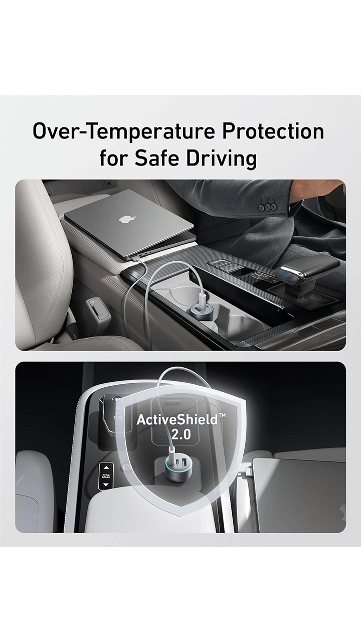 آداپتور فندکی Anker 67W Powerful Triple-Port 535 Car Charger B2731 دو درگاه تایپ USB – C دارد که با داشتن توان خروجی 67 واتی حتی برای شارژ دستگاه هایی با ابعاد بزرگ (لپ تاپ یا مک بوک) نیز مناسب هستند. شارژر فندکی انکر Anker 535 Car Charger مدل B2731 سه پورت 67 وات به دلیل بهره مندی از فناوری تنظیم شارژ هوشمند، از باتری لوازم دیجیتالی محافظت می کند و مانع از شارژ بیش از حد دستگاه و آسیب دیدن باتری می شود.