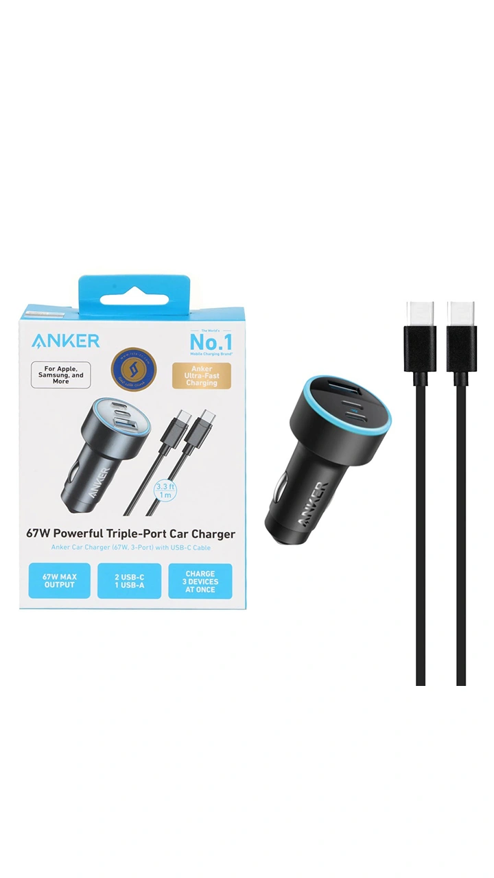 با خرید شارژر فندکی 67 وات 3 پورت انکر مدل B2731 نیازی به خرید کابل USB – C ندارید. یک کابل یک متری USB-C به USB-C از اقلام همراه این آداپتور خواهد بود و درون جعبه آن قرار دارد. همین حالا می توانید خرید شارژر Anker 67W Powerful Triple-Port 535 Car Charger B2731 را نهایی کنید و محصول را درب منزل تحویل بگیرید.