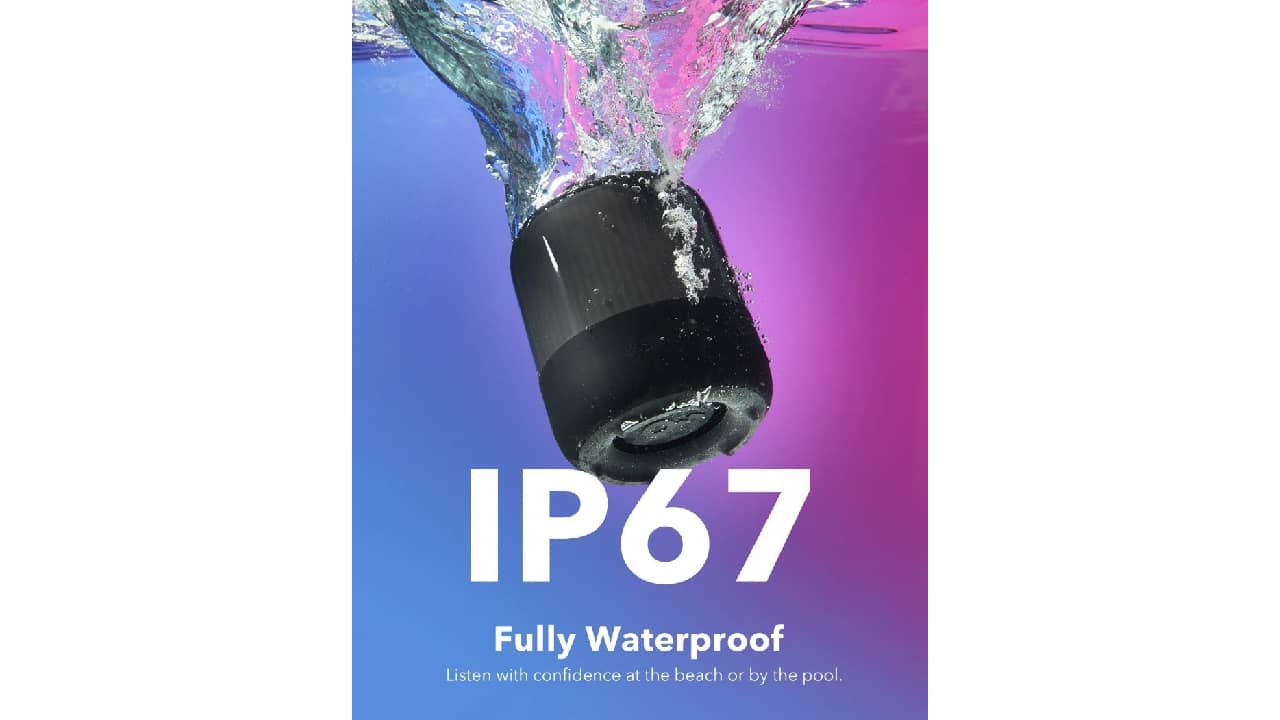اسپیکر بلوتوثی قابل حمل انکر Soundcore Glow Mini A3136011 دارای استاندارد IP67 است، که آن را در برابر آب و گرد و غبار مقاوم می سازد. این اسپیکر می تواند تا عمق 1 متری آب را به مدت 30 دقیقه تحمل کند، بدون اینکه آسیبی ببیند. علاوه بر این، Glow Mini دارای قابلیت شناور شدن است، بنابراین حتی اگر به طور اتفاقی در آب بیفتد، نگرانی از غرق شدن آن وجود ندارد.