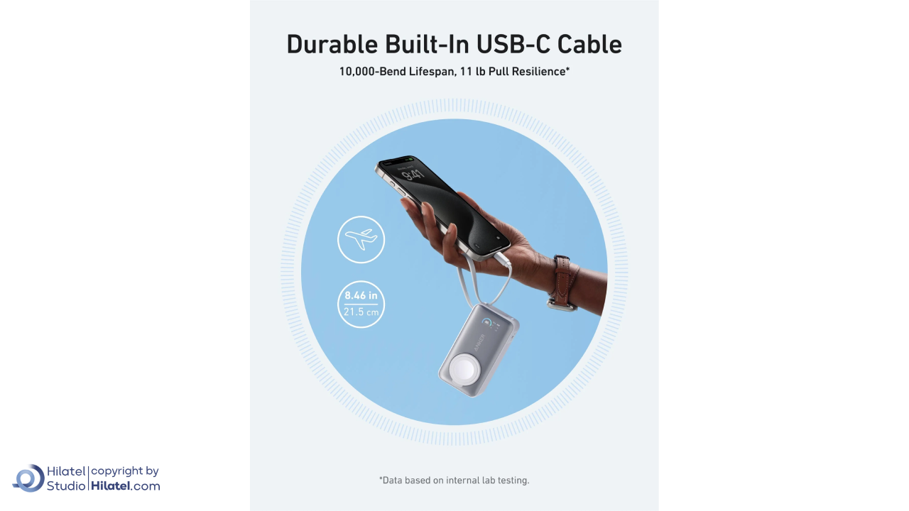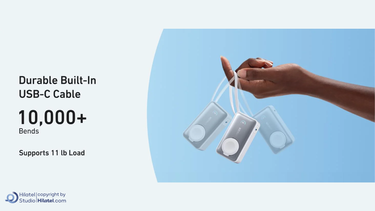 کابل USB-C داخلی این پاوربانک دارای دوام بالایی است و می تواند بیش از ۱۰۰۰۰ بار خم شدن را بدون آسیب تحمل کند.