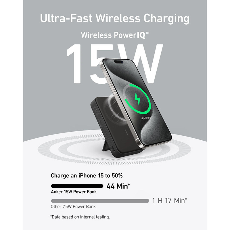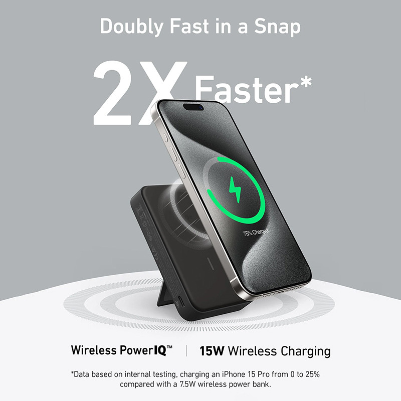 قابلیت دیگر پاوربانک 15 وات مگ سیف 10000 میلی آمپر انکر مدل A1654، شارژ فوق سریع آن است. در واقع در این محصول از تکنولوژی Qi2 استفاده شده است. این فناوری باعث شده تا پاوربانک در کوتاه ترین زمان ممکن و با امنیت بسیار بالا دستگاه های مختلف شما را شارژ کند. این پاوربانک دارای توان خروجی 15 وات است و با استفاده از فناوری PowerIQ دستگاه ها را شارژ می کند. دقت داشته باشید که با استفاده از این پاوربانک نمی توانید لپ تاپ را شارژ کنید.