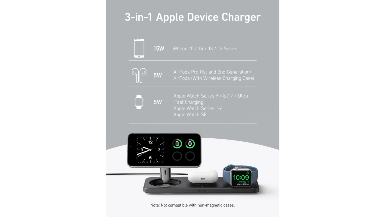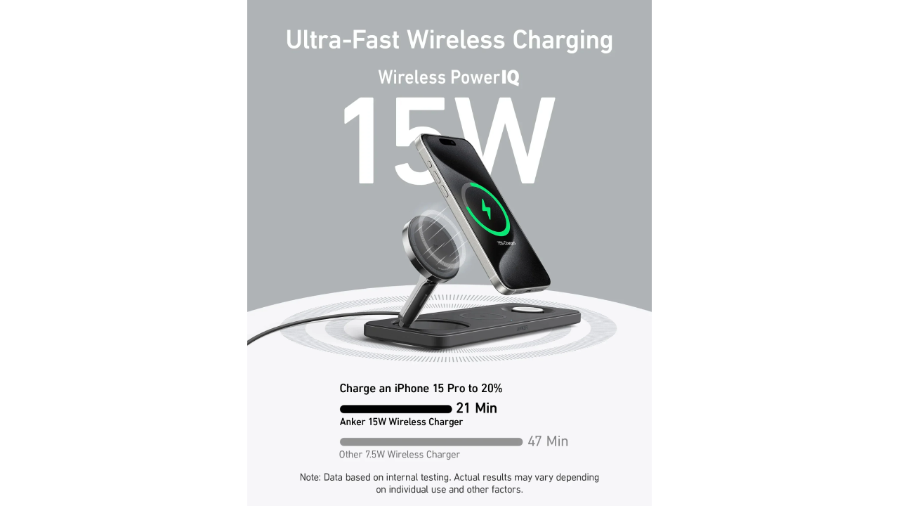Anker MagGo Wireless Charging Station (3-in-1 Pad) Whit Charger And USB-C Cable