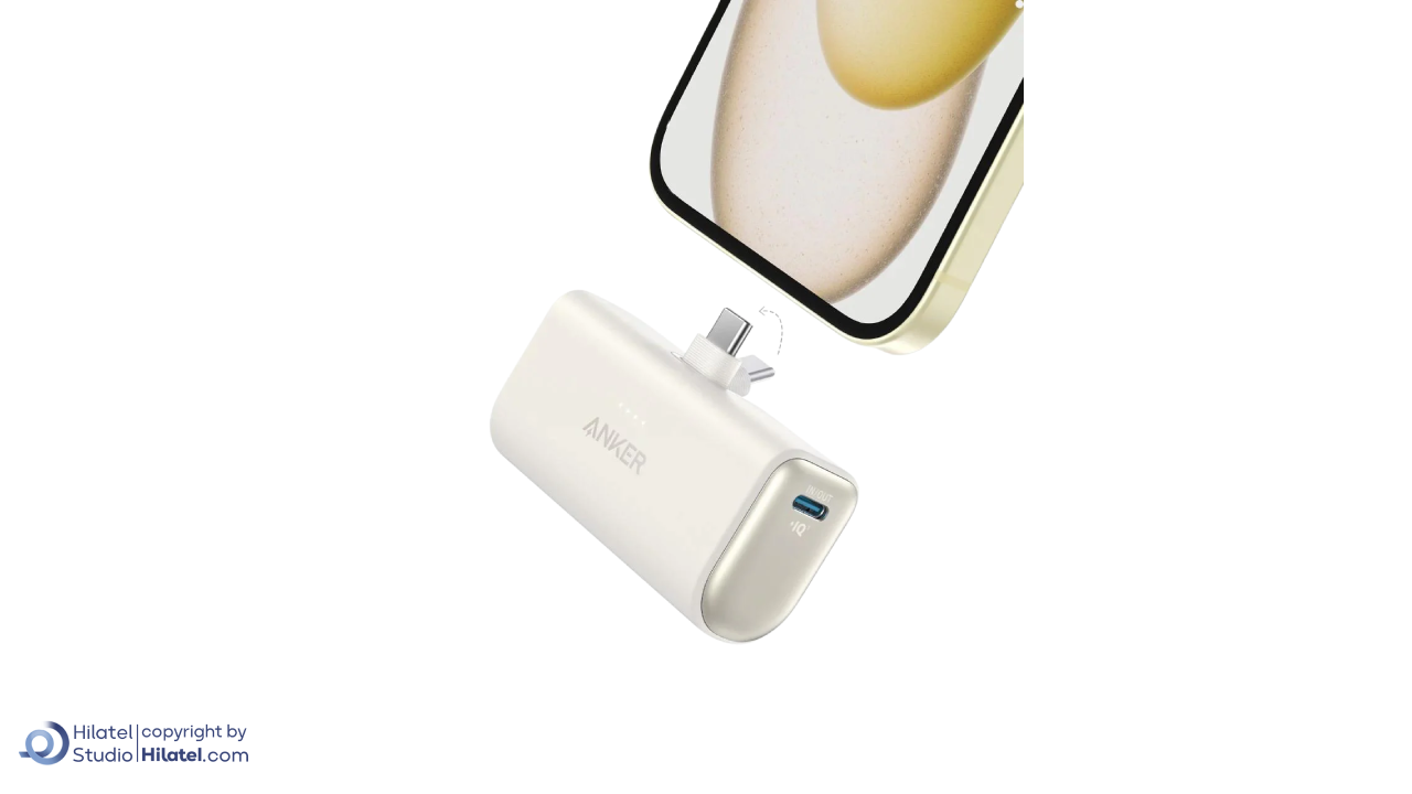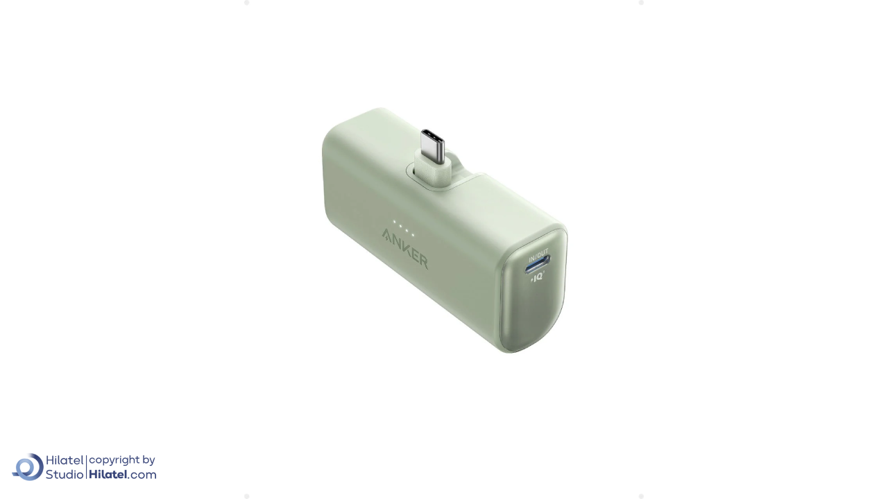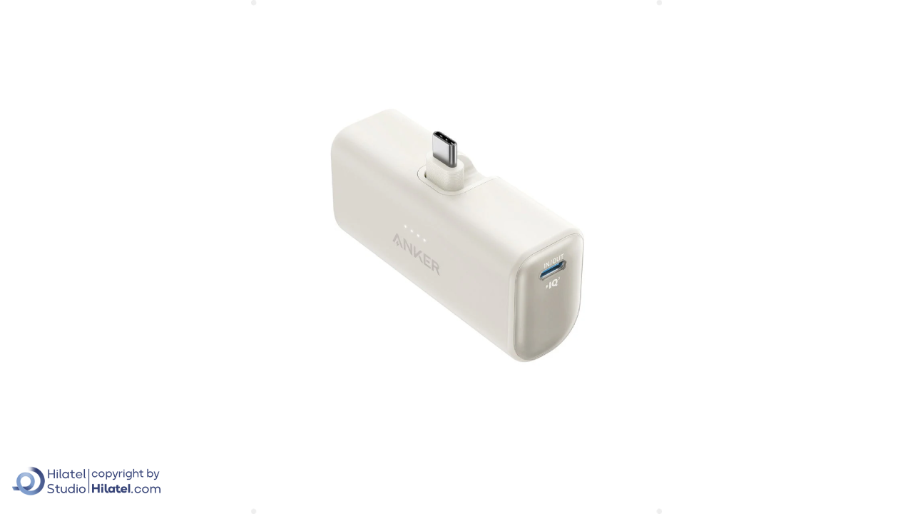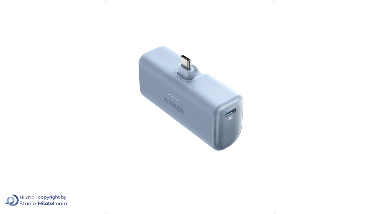 رابط USB-C با قابلیت تاشو: پاوربانک انکر مدل A1653 دارای رابط تایپ سی است که به داخل تا می شود تا از آسیب به رابط جلوگیری شود.