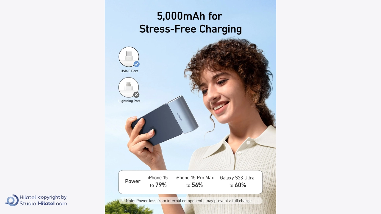 اگر می خواهید پاوربانکی جیبی داشته باشید که به طور همزمان از چند تکنولوژی شارژ پیشرفته پشتیبانی کند و دو پورت تایپ سی داشته باشد، فروشگاه هیلاتل در سریع ترین زمان ممکن و با ارائه اصالت کالا این پاوربانک 22.5 وات 5000 میلی آمپر انکر مدل A1653 را به دست شما می رساند.
