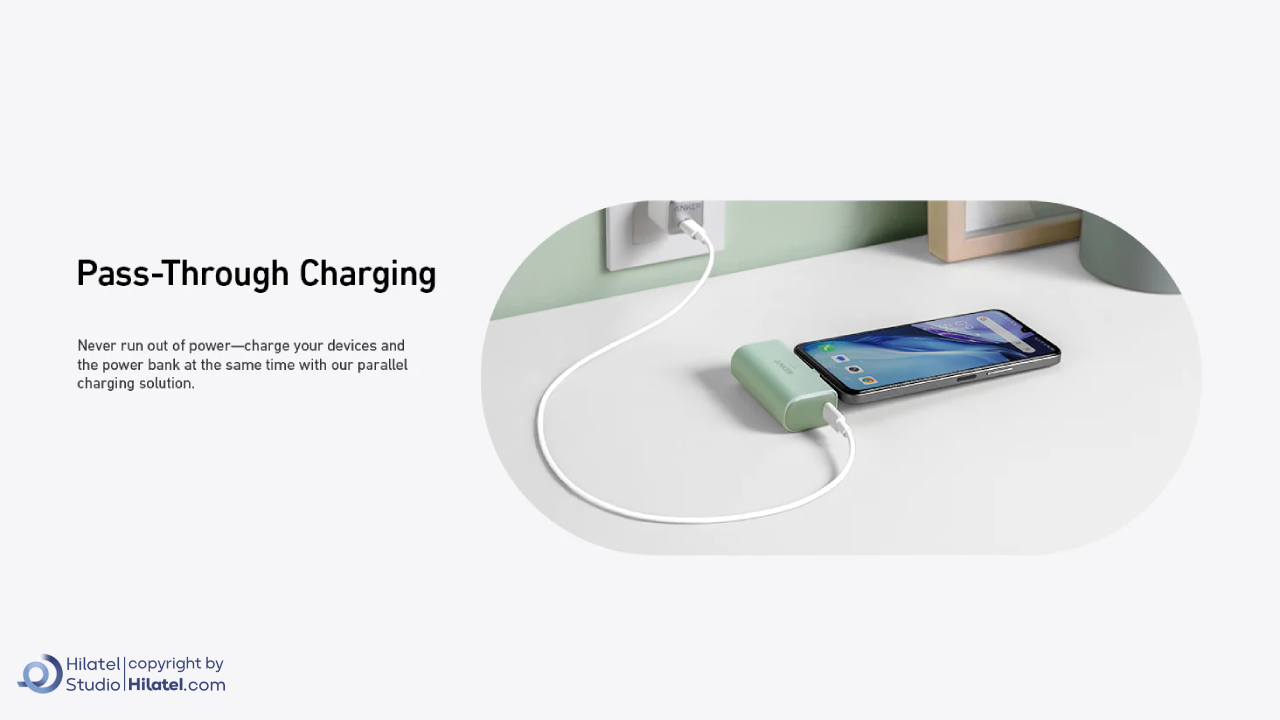 شارژ همزمان: شما می توانید پاوربانک Anker A1653 و موبایل خود را به صورت همزمان شارژ کنید.