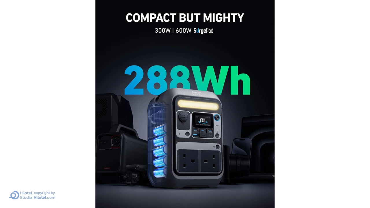 پاور استیشن مدل SOLIX C300 انکر، ظرفیت ۲۸۸ وات ساعت (Wh) و توان 600 وات دارد. در نتیجه انرژی مورد نیاز برای شارژ دستگاه های مختلف را در هر مکان و زمان تأمین می کند. این دستگاه توان خروجی پیوسته ۳۰۰ وات دارد و در لحظات کوتاه تا ۶۰۰ وات توان لحظه ای (Surge Power) ارائه می دهد. به همین دلیل این دستگاه برای تأمین برق مورد نیاز وسایل کوچک خانگی، ابزار الکترونیکی و تجهیزات سفر استفاده می شود.