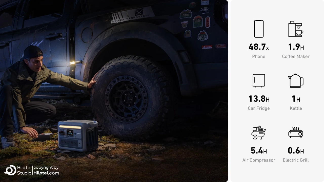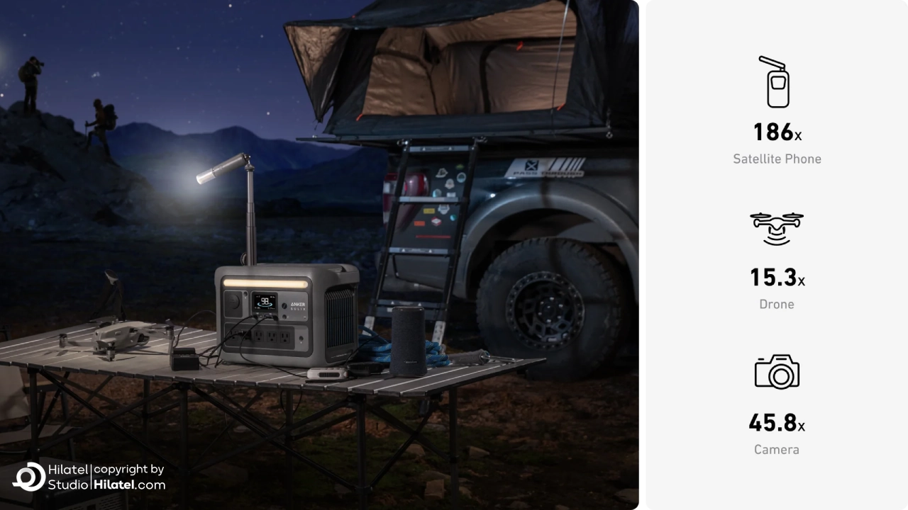 پاور استیشن انکر مدلSOLIX C800 با توان 1200 وات یکی از جدیدترین منابع انرژی قابل حمل برند Anker است که برای کمپینگ، سفر، فضای باز و شرایط اضطراری طراحی شده است. این دستگاه با ظرفیت 768 وات بر ساعت (Wh) و فناوری SurgePad، تا ۱۰ وسیله برقی را به صورت هم زمان و بدون افت توان شارژ می کند.
