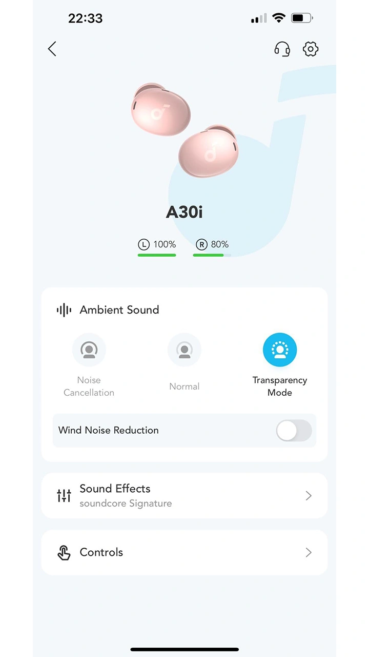 هندزفری بی سیم انکر SOUNDCORE A30i A3958 از قابلیت حذف نویز برخوردار است و کیفیت بالایی برای پخش صدا دارد. در نتیجه اگر قصد دارید از یک هندزفری مناسب برای انجام بازی های موبایلی استفاده کنید، هندزفری بلوتوثی انکر مدل A30i انتخابی مناسب به شمار می رود. این محصول با استفاده از الگوریتم تطبیقی می تواند صداهای خارجی (نویز) را تشخیص داده و آن ها را حذف کند.