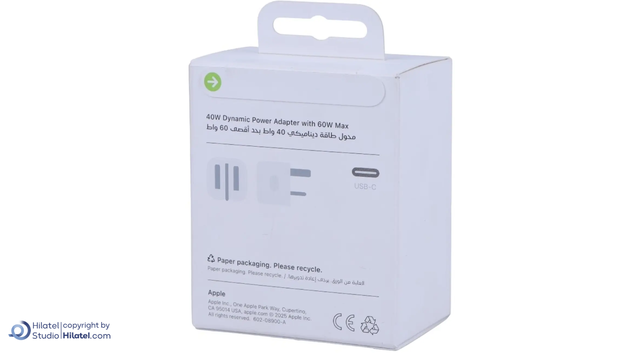 اداپتور 40 وات داینامیک اپل با حداکثر توان 60 وات یکی از جدیدترین شارژرهای رسمی اپل است که برای کاربران حرفه ای طراحی شده است. این آداپتور با قابلیت Dynamic Power می تواند بسته به نیاز دستگاه، توان را به صورت هوشمند تنظیم کند و همین باعث می شود سرعت شارژ بهتر و پایدارتری تجربه کنید. با این که روی کاغذ 40 وات معرفی شده، اما در مواقع لازم توانش را تا 60 وات بالا می برد.