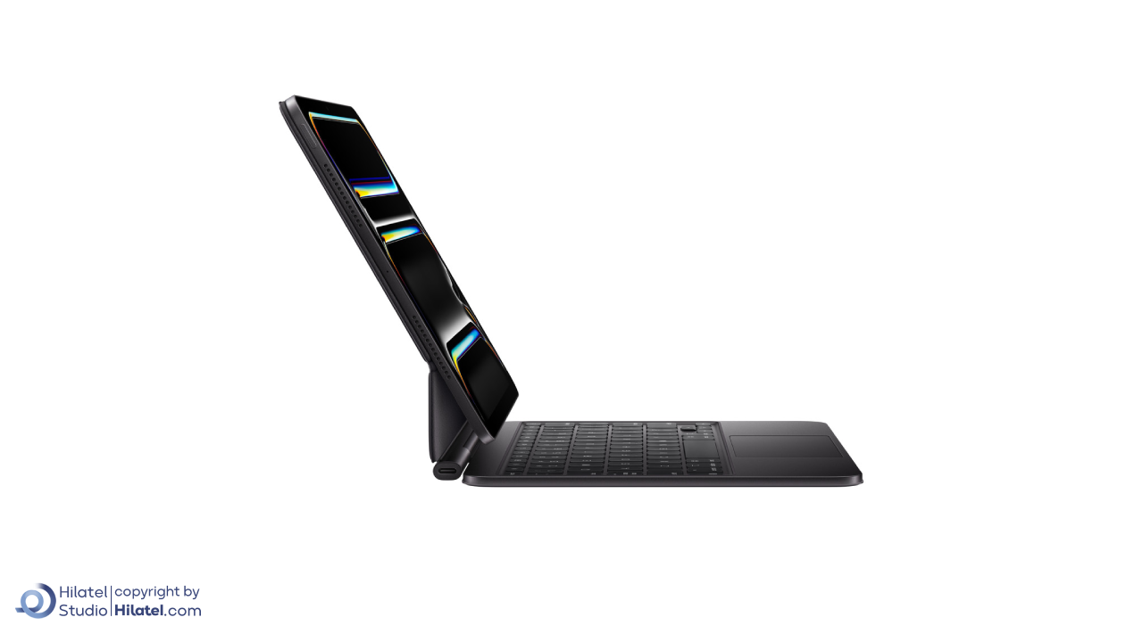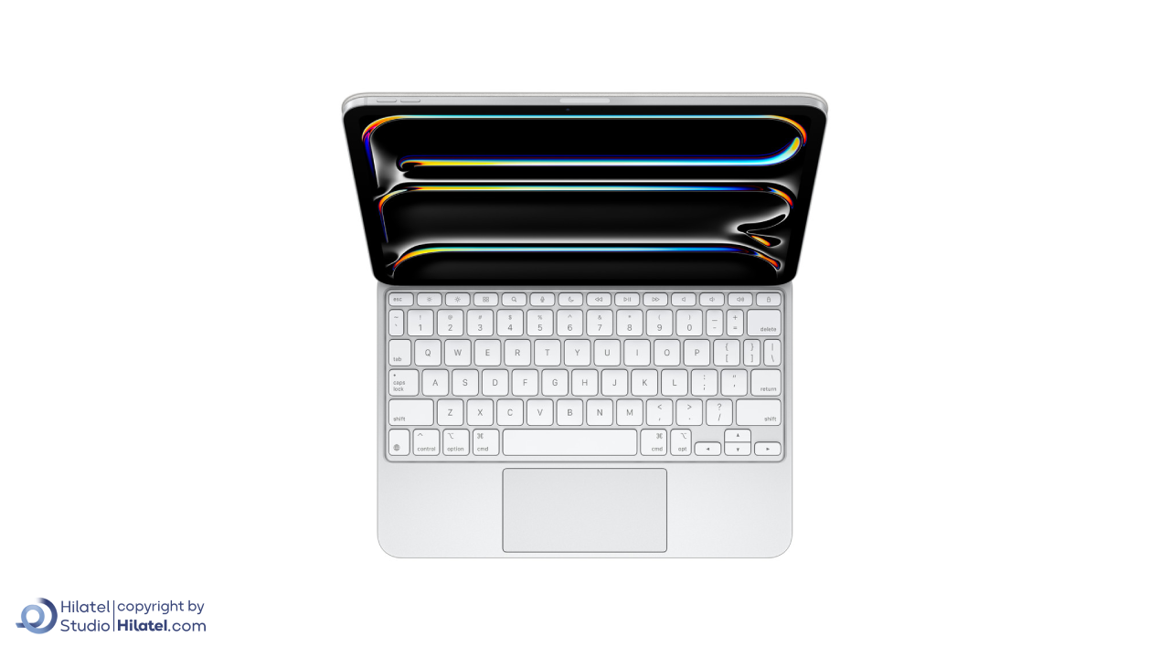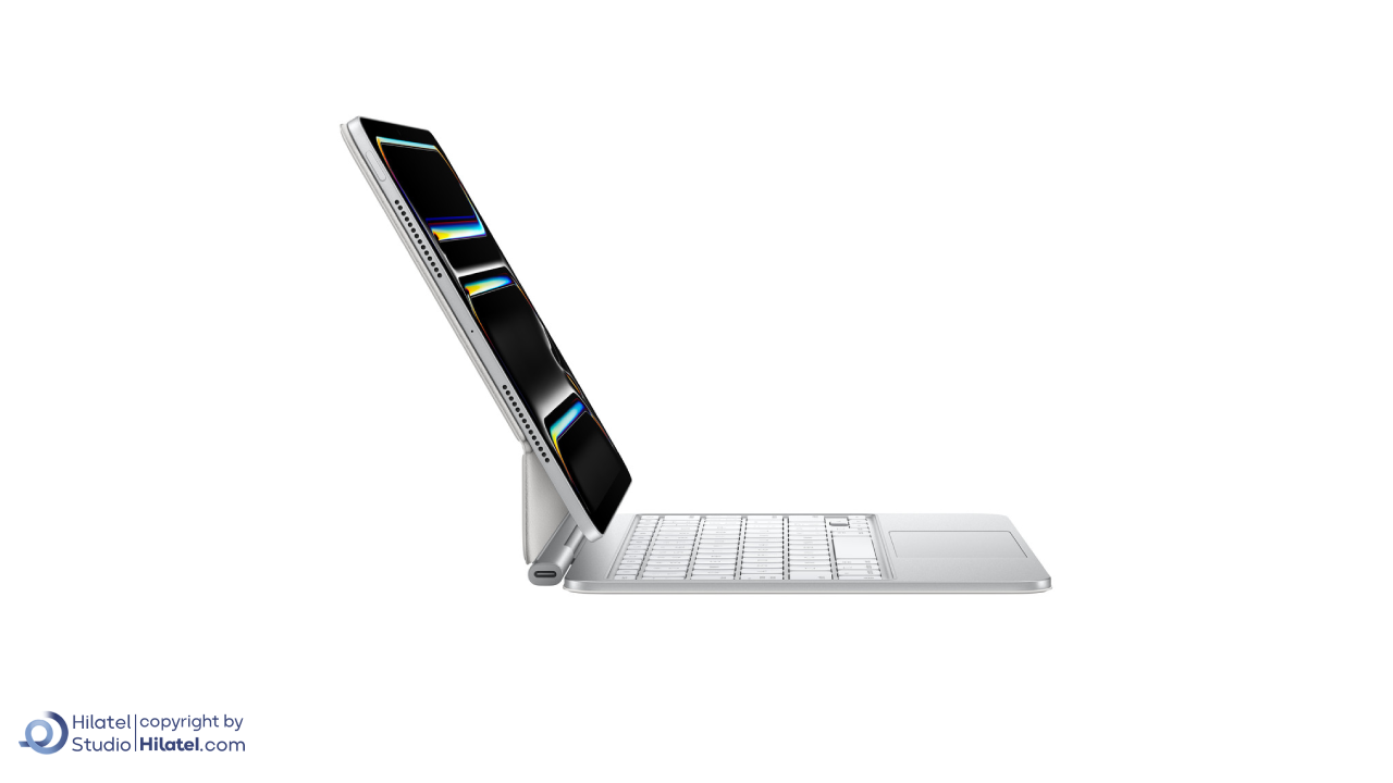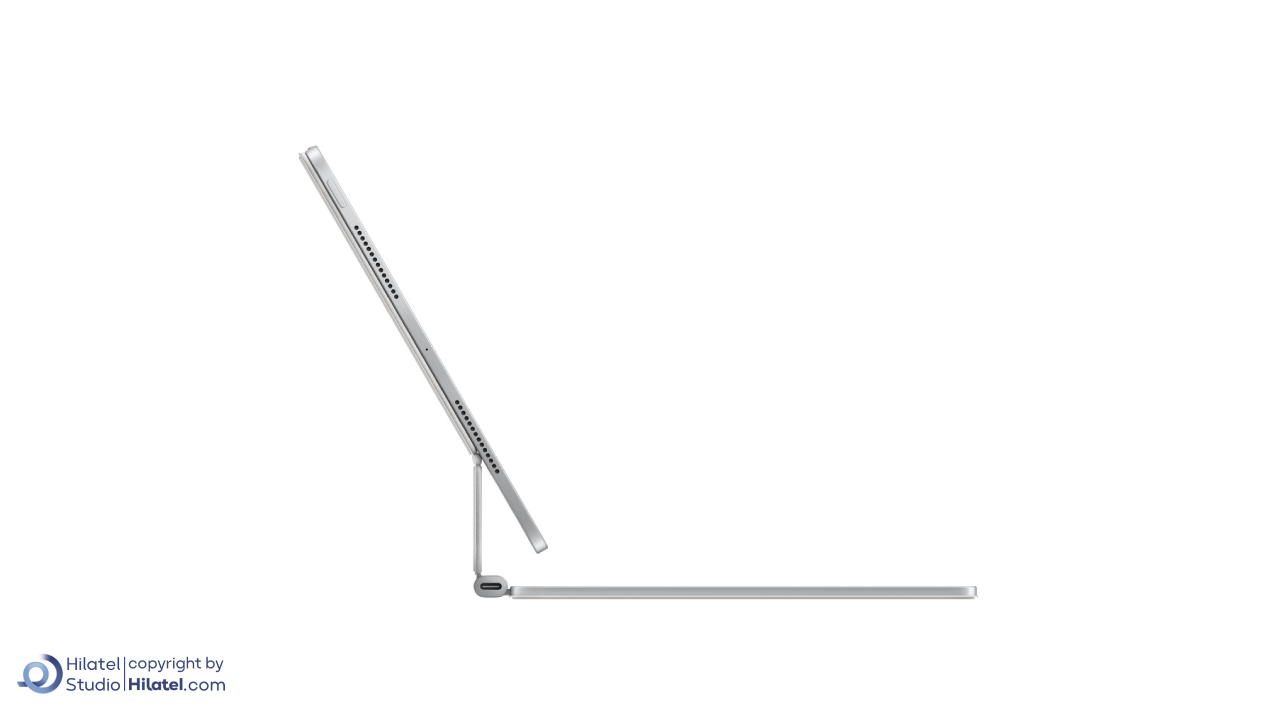 کیبورد تبلت اپل مدل Magic با طراحی شناور و لولا آلومینیومی، امکان اتصال مغناطیسی به iPad Pro را فراهم کرده است. همچنین به کاربران اجازه می دهد تا زاویه دید دلخواه خود را تنظیم کنند. این طراحی نه تنها زیبایی خاصی به دستگاه می بخشد، بلکه تجربه ای مشابه لپ تاپ را برای کاربران فراهم می کند.