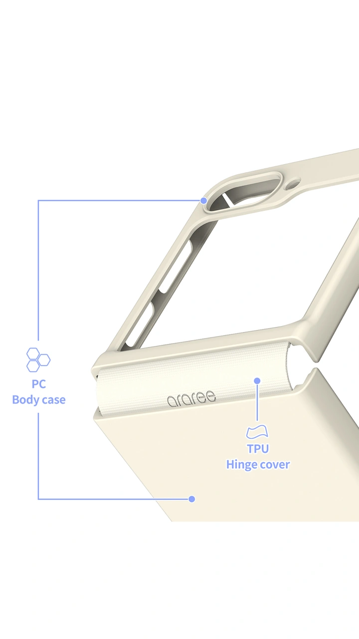 قاب آراری مدل Aero Flex با استفاده از مواد پلی یورتان ترموپلاستیکTPU و پلی کربنات PC طراحی شده که ترکیبی از انعطاف پذیری و مقاومت بالا در برابر ضربه و خط و خش را ارائه میدهد. این قاب کاملاً متناسب با گوشی Galaxy Z Flip 6 طراحی شده و هنگام باز و بسته شدن گوشی، از لولاها محافظت میکند. همچنین دسترسی به تمامی درگاه ها و دکمه ها کاملاً ساده و روان است. علاوه بر ویژگی های محافظتی، قاب Aero Flex برای راحتی و کارایی نیز طراحی شده است. این قاب دسترسی روان و بدون محدودیت به تمامی درگاه ها، دکمه ها و ویژگی های گوشی را تضمین می کند، به طوری که کاربران بتوانند بدون هیچ محدودیتی از دستگاه خود استفاده کنند.
