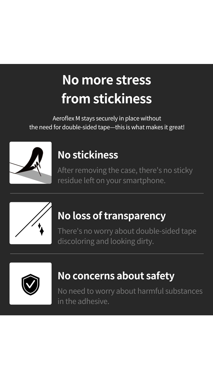 قاب Aero Flex با سطح مات و طراحی ضد لغزش، تجربه ای راحت و امن را برای کاربران فراهم میکند. گوشی به راحتی از دست سر نمی خورد و در عین حال ظاهری تمیز و حرفه ای دارد. این ویژگی ها، Aero Flex را به گزینه ای ایده آل برای محافظت روزمره از Galaxy Z Flip 6 تبدیل کرده است.