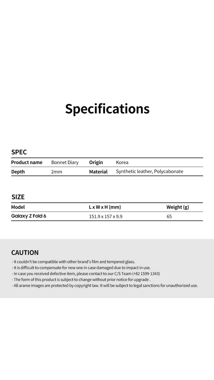 مشخصات Araree Bonnet Diary Galaxy Z Fold 6