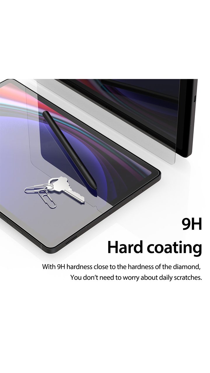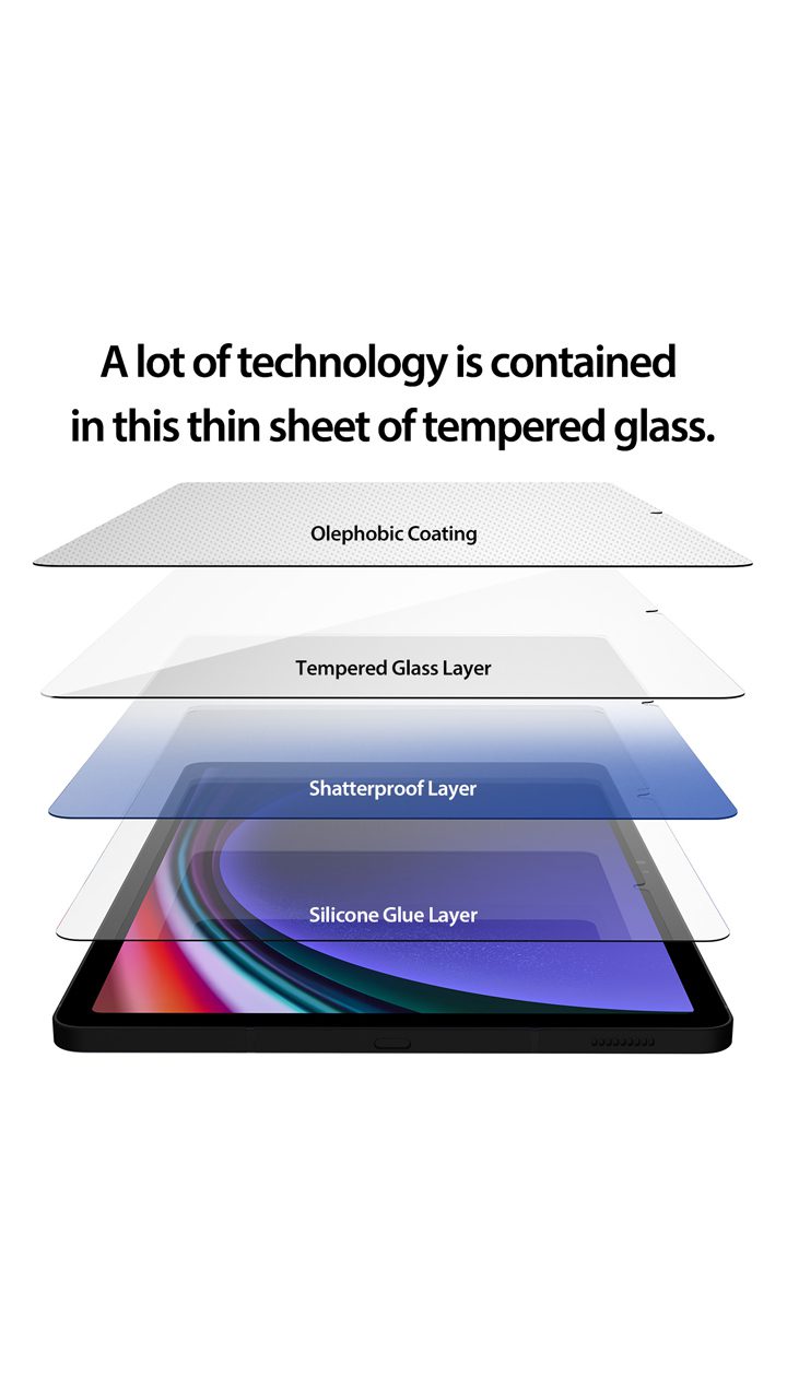 گلس های پلاستیکی برای محافظت از خط و خش کاربردی هستند؛ اما از نمایشگر در برابر ضربه یا شوک محافظت نمی کنند. به همین دلیل شیشه های تمپرد برای ساخت گلس شیشه ای تمام صفحه تبلت سامسونگ A9 مورد استفاده قرار می گیرند. گلس Araree Core Full Cover Tempered Glass Galaxy Tab A9 دوام بالایی دارد و به راحتی روی صفحه نمایش نصب می شود.