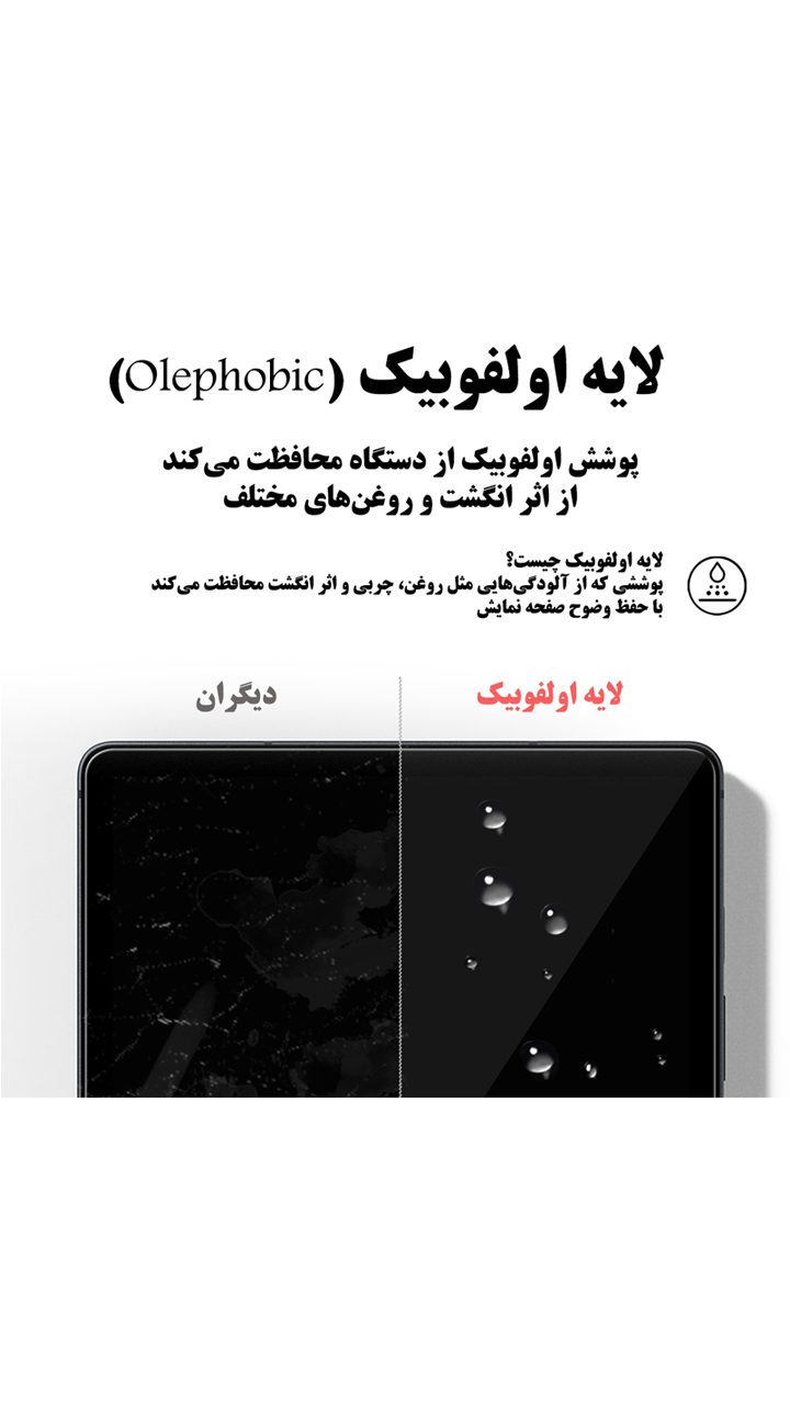 - مقاومت در برابر آلودگی، چربی، اثر انگشت (اولئوفوبیک)